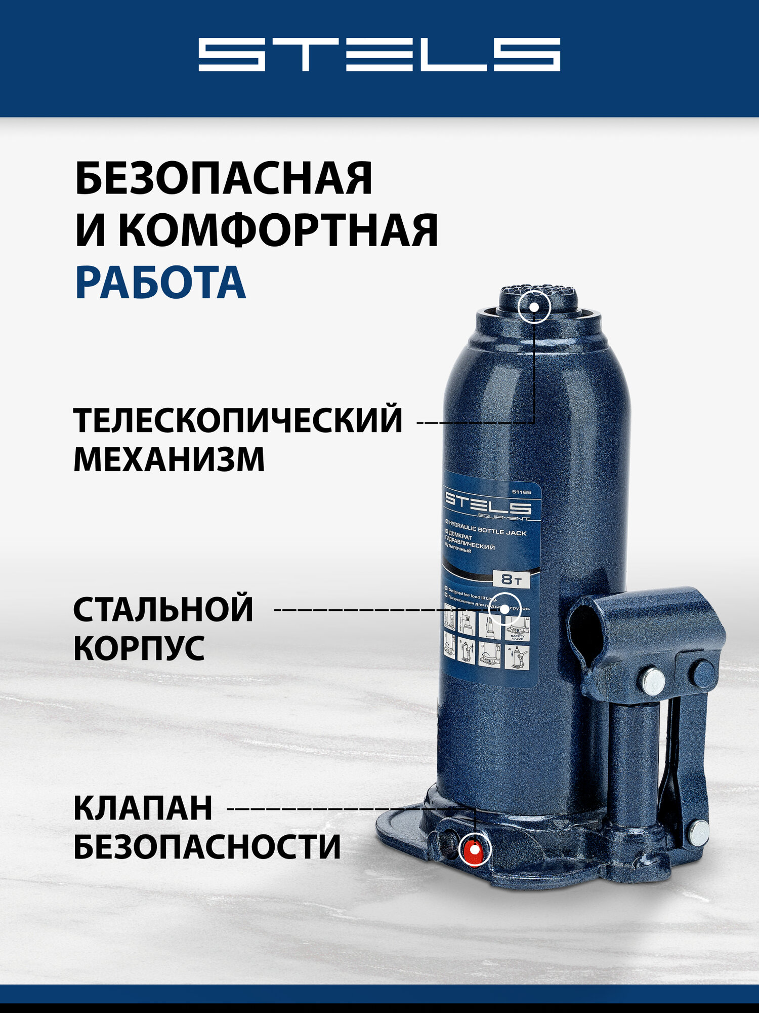 Домкрат гидравлический бутылочный, 8 т, h подъема 222-447 мм Stels, арт. 51165