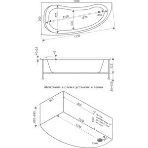 Ванна алегра (левая) (ванна+каркас) 1500*900