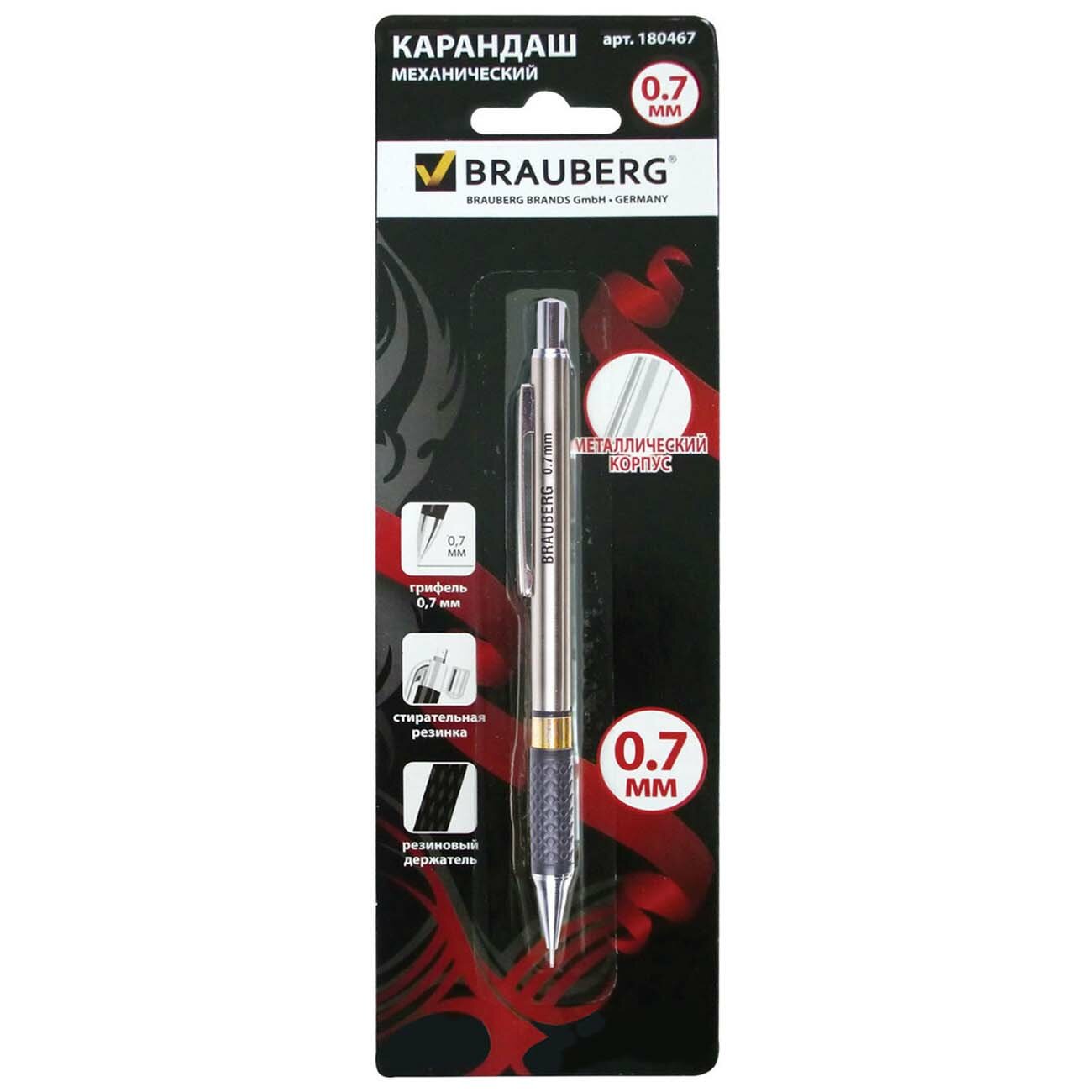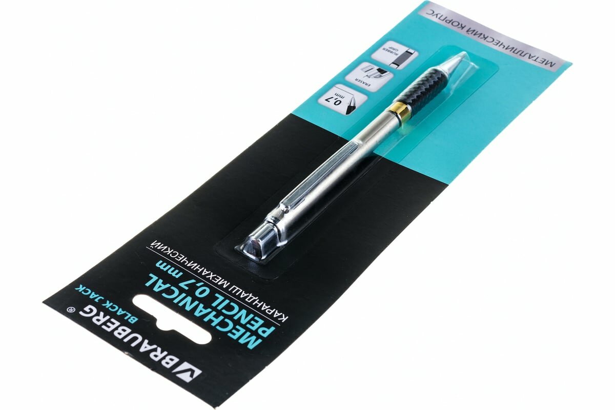 Купить Карандаш механический Brauberg "BlackJack" металлический корпус, резиновый держатель, ластик, 0,7 мм (180467)