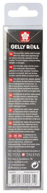 Купить Набор гелевых ручек Sakura Gelly Roll (0.5/0.8/1мм, белые) 3шт. (POXPGBWH3C)