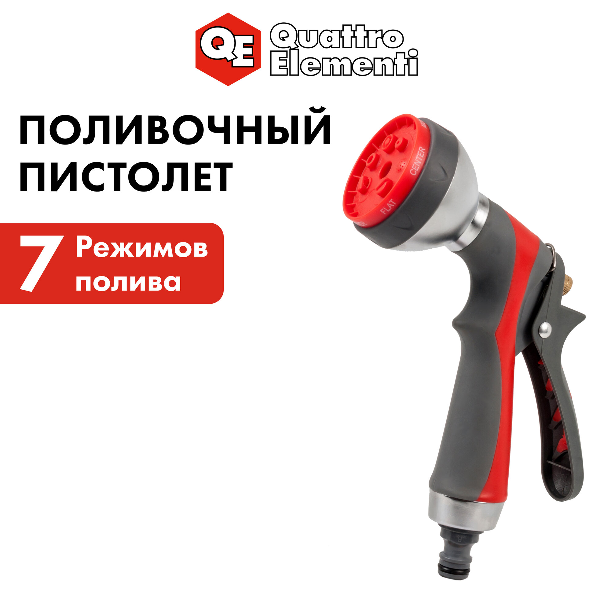 Пистолет поливочный QUATTRO ELEMENTI 7-ми режимный, металл + мягкий пластик (металл + мягк. пластик)