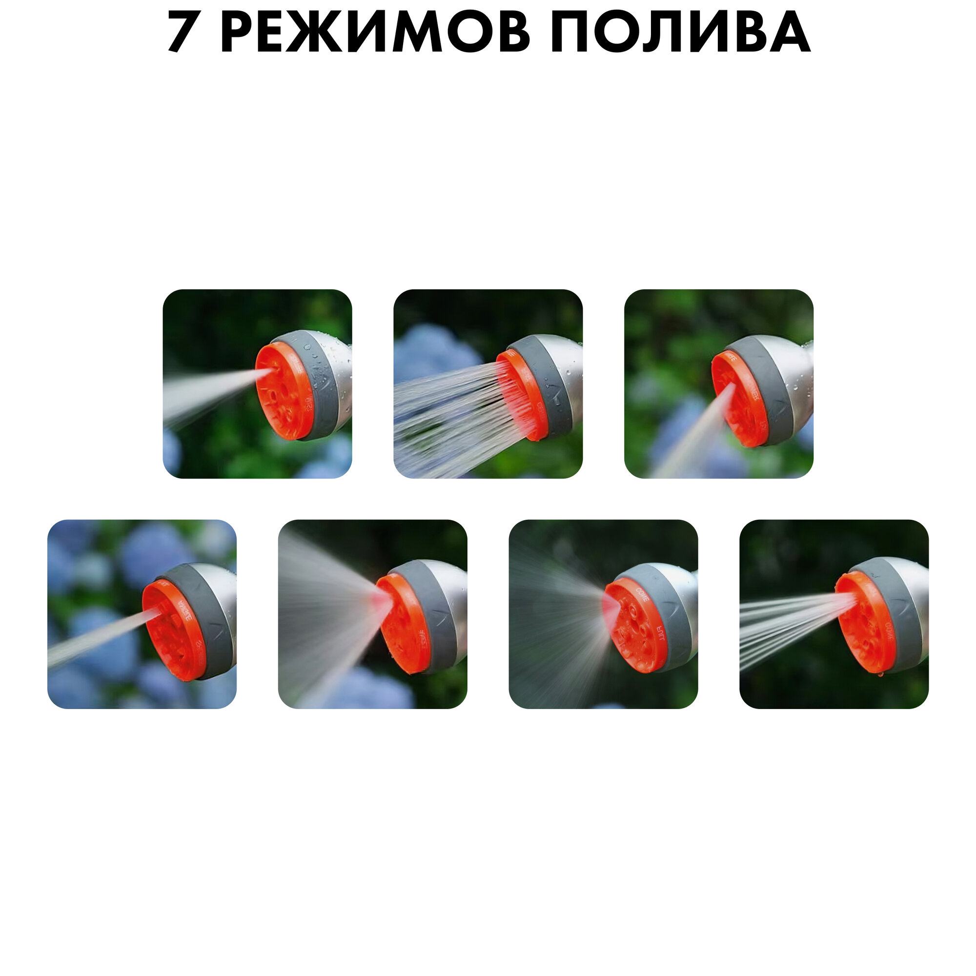 Пистолет поливочный 7-ми режимный QUATTRO ELEMENTI, металл + мягкий пластик 646-157
