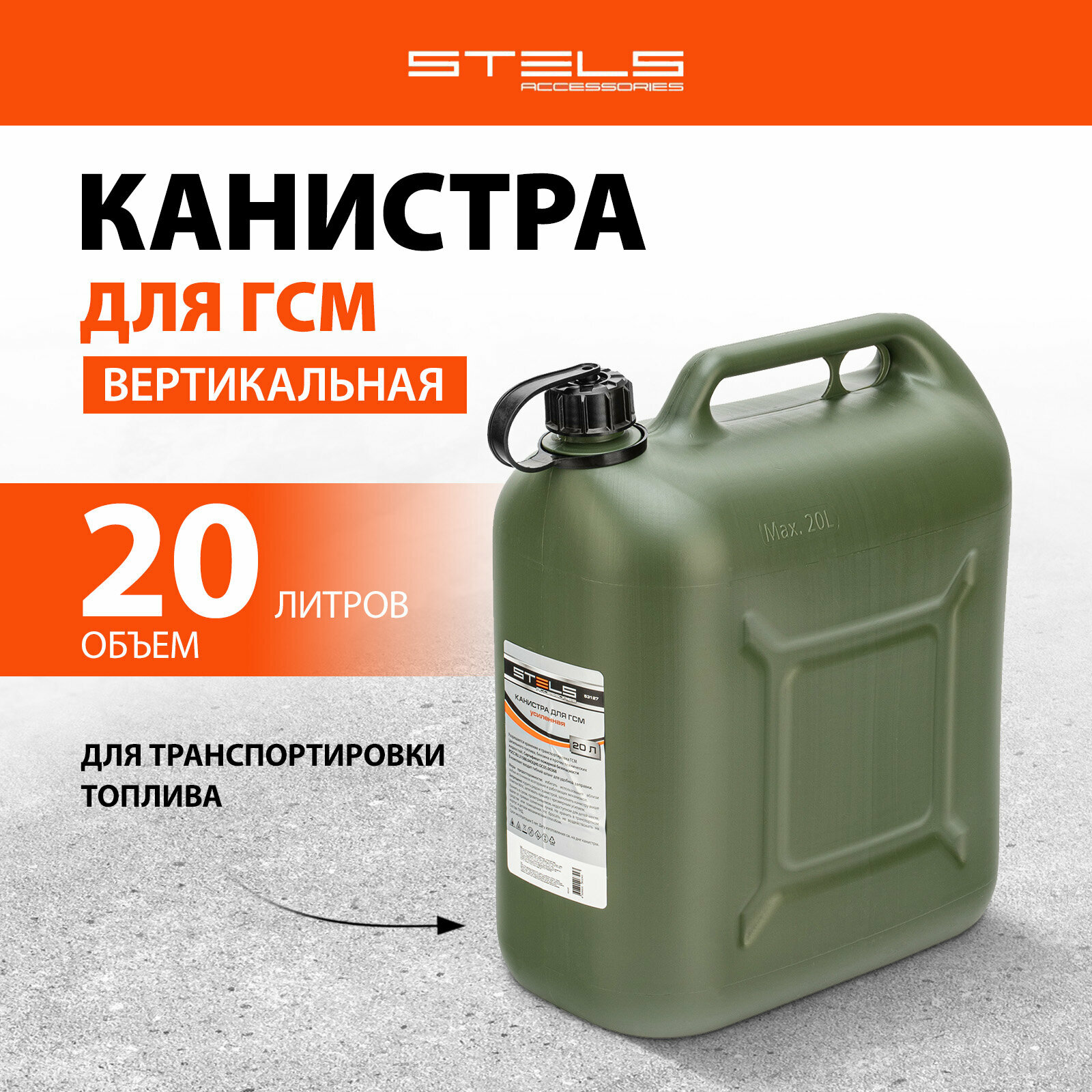 STELS 53127 Канистра для ГСМ вертикальная 20 л, пластиковая, усиленная Stels 53127 STELS 53127