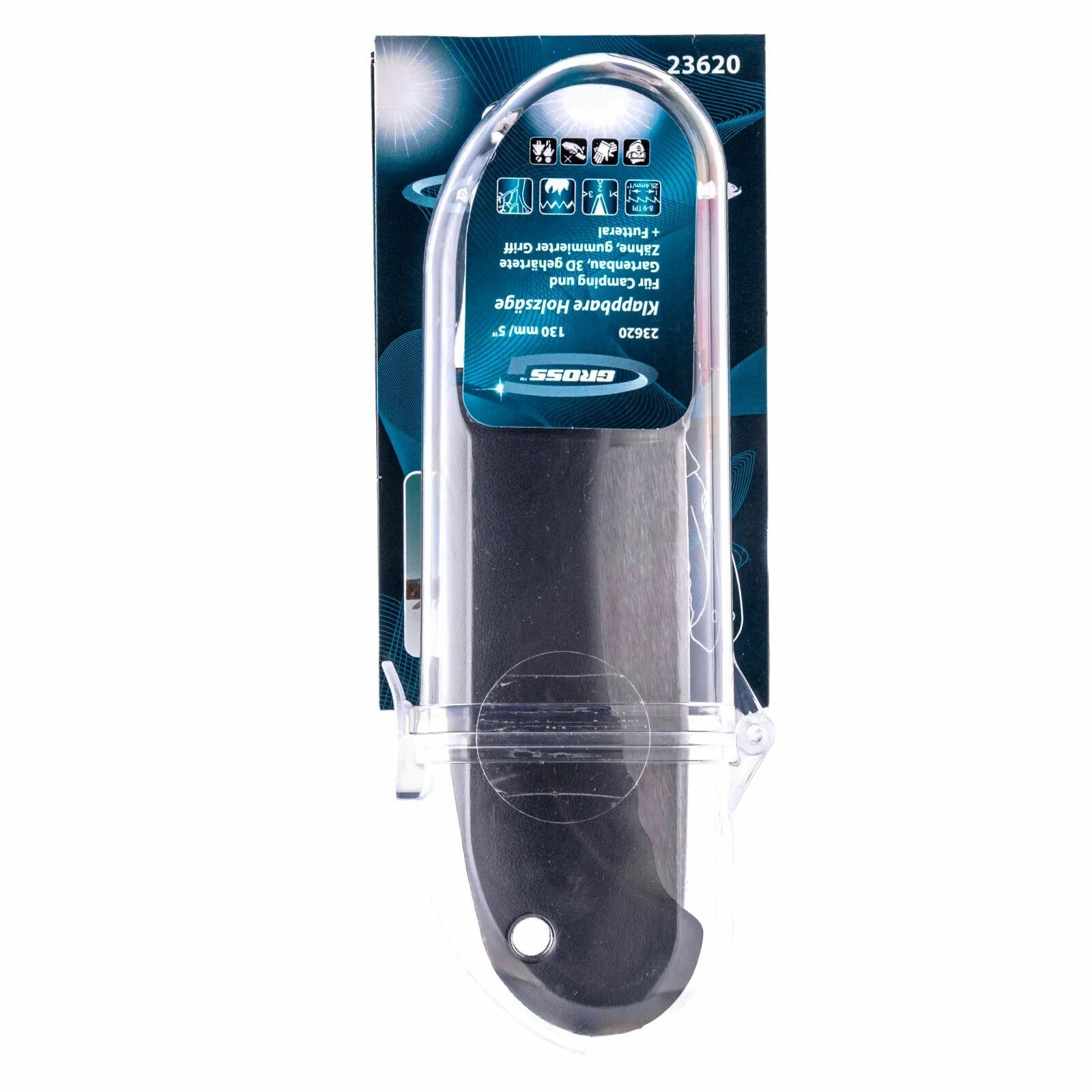 Пила по дереву Gross 23620 Piranha, складная, для кемпинга и сада, 130 мм, 8-9 TPI, каленый зуб 3D, обрезиненная рукоятка, кобура