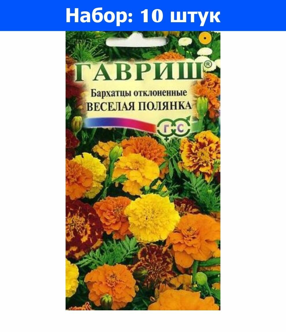 Семена 10 упаковок! Бархатцы откл. Веселая полянка 0,3г 20-35см (Гавриш)