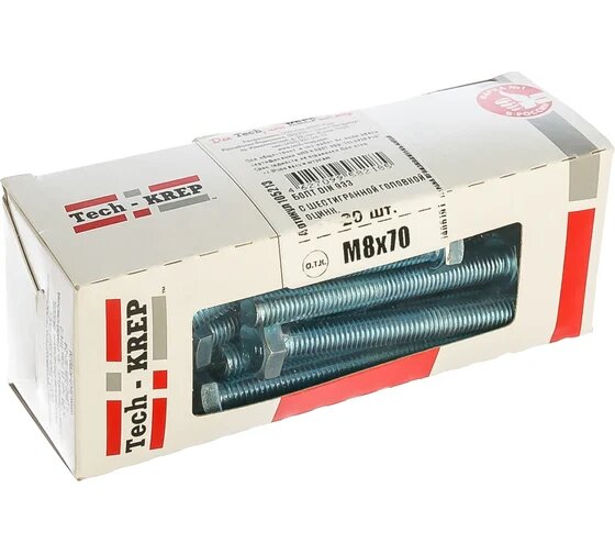 Купить Tech-Krep Болт DIN933 с шестигранной головкой оцинк. М8х70 (20 шт) - коробка с ок. Tech-Kr 105213
