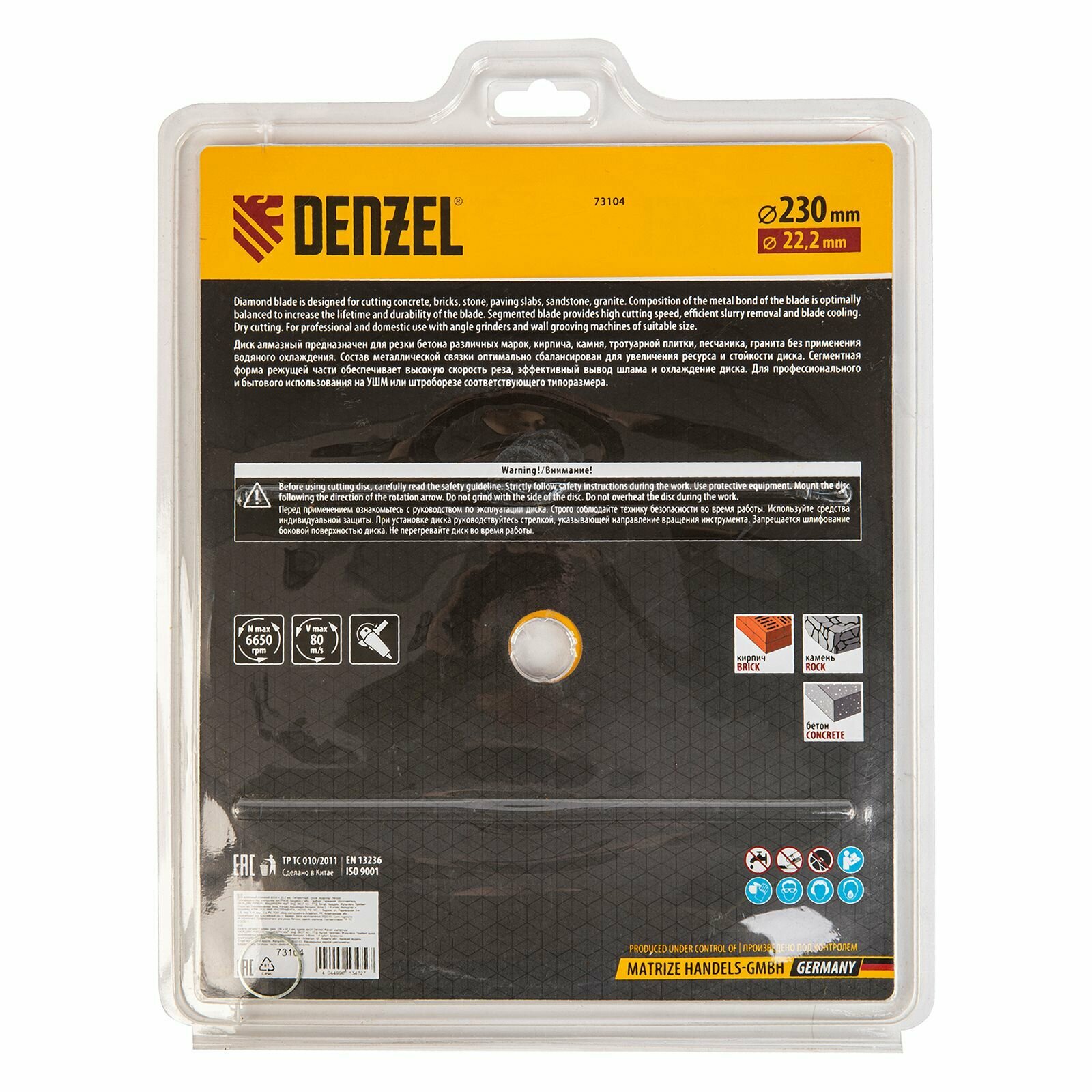 Алмазный диск DENZEL 73104, универсальный, 230мм, 1шт