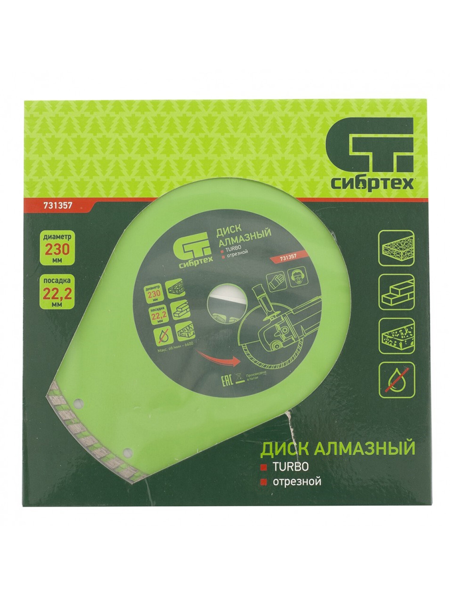 Диск алмазный СИБРТЕХ 731357, Turbo, 230 х 22,2 мм, сухая резка