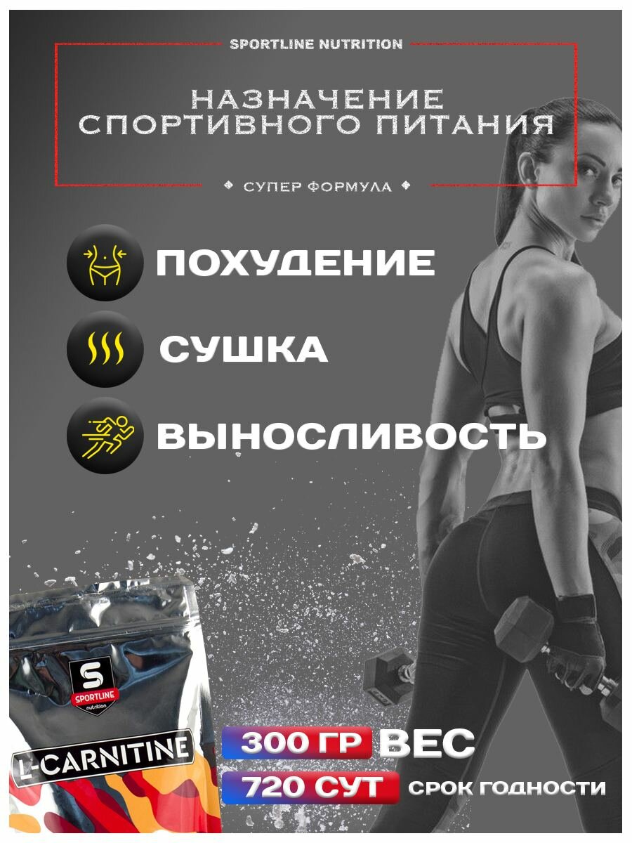 SportLine Nutrition L-карнитин, 300 гр, клубника