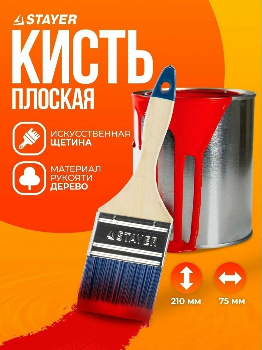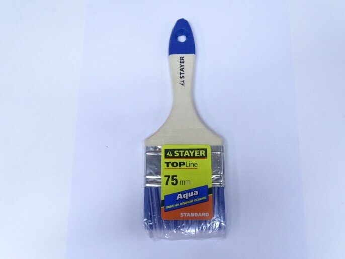 STAYER AQUA 75 мм, 3″ искусственная щетина, деревянная ручка, Плоская кисть, STANDARD (01032-075)