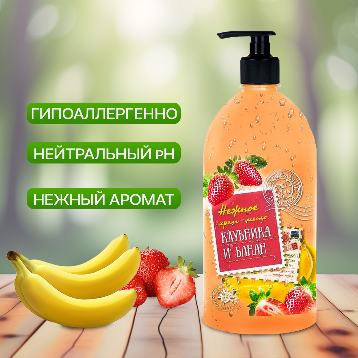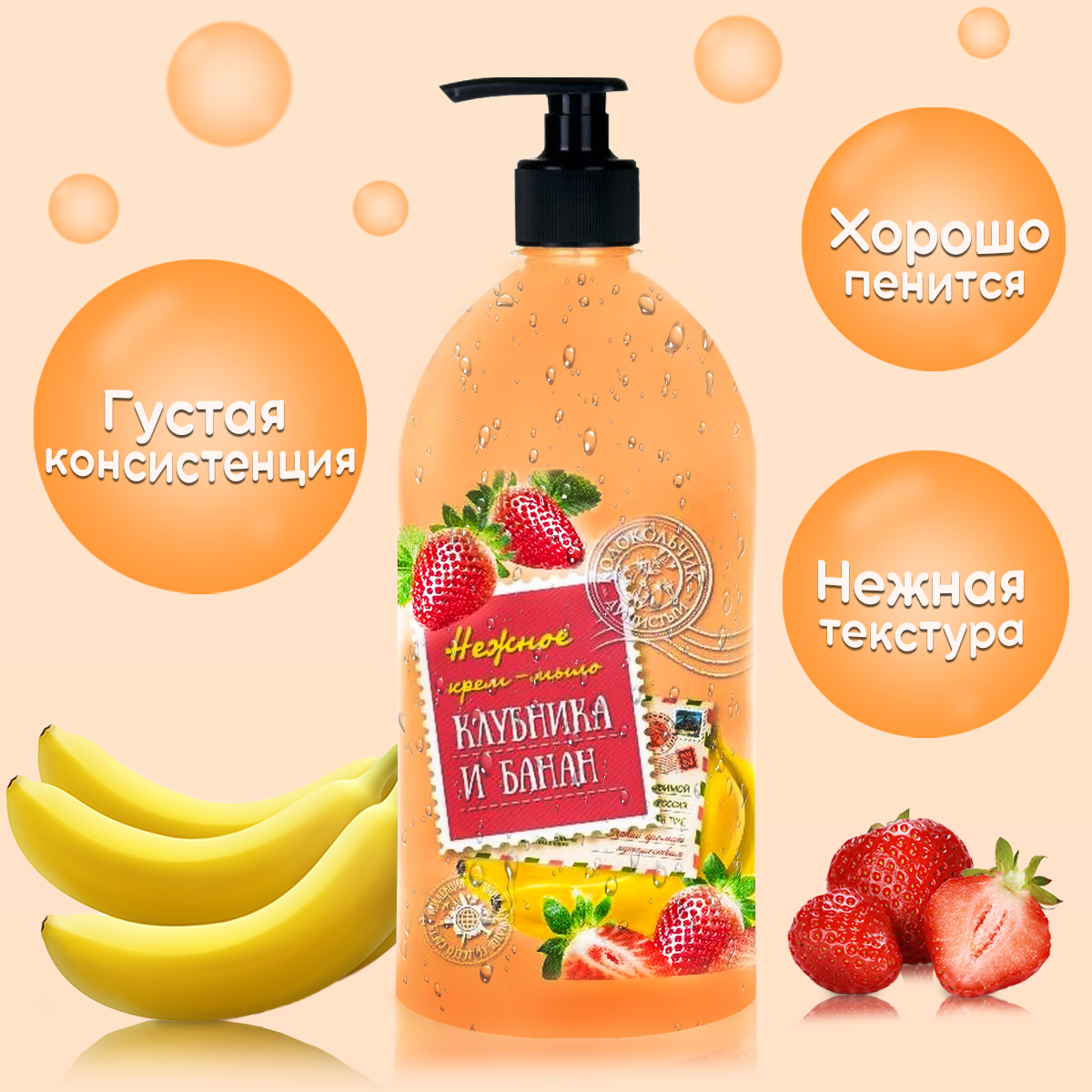 Мыло-крем жидкое 300мл дозатор Колокольчик Клубника и Банан