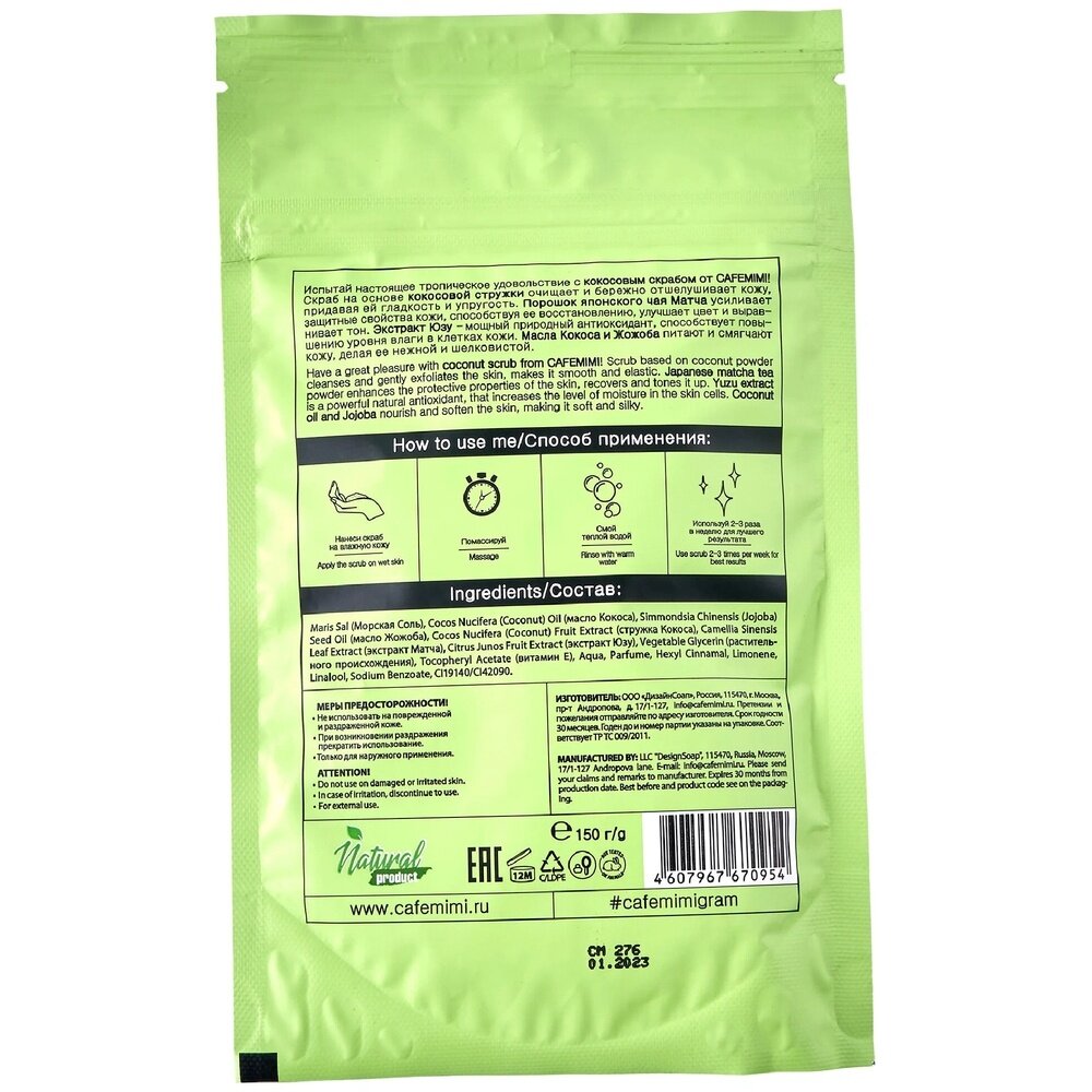 Cafemimi Скраб для тела кокосовый (кокос, матча, юзу) 150 г