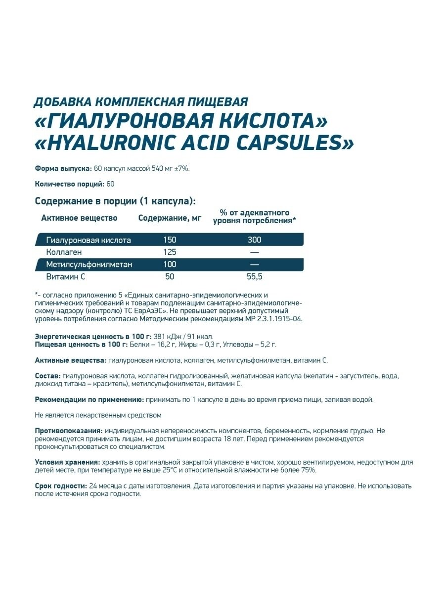 GeneticLab Nutrition Hyaluronic Acid (60капс) интересное: