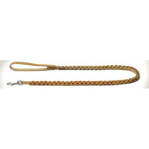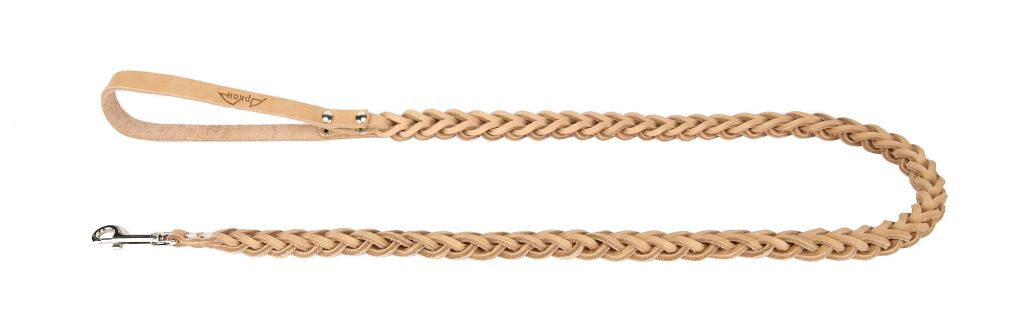 Поводок-Плетенка аркон кожаный плетение - косичка, импортный карабин натуральный для собак (120 см/8 мм)