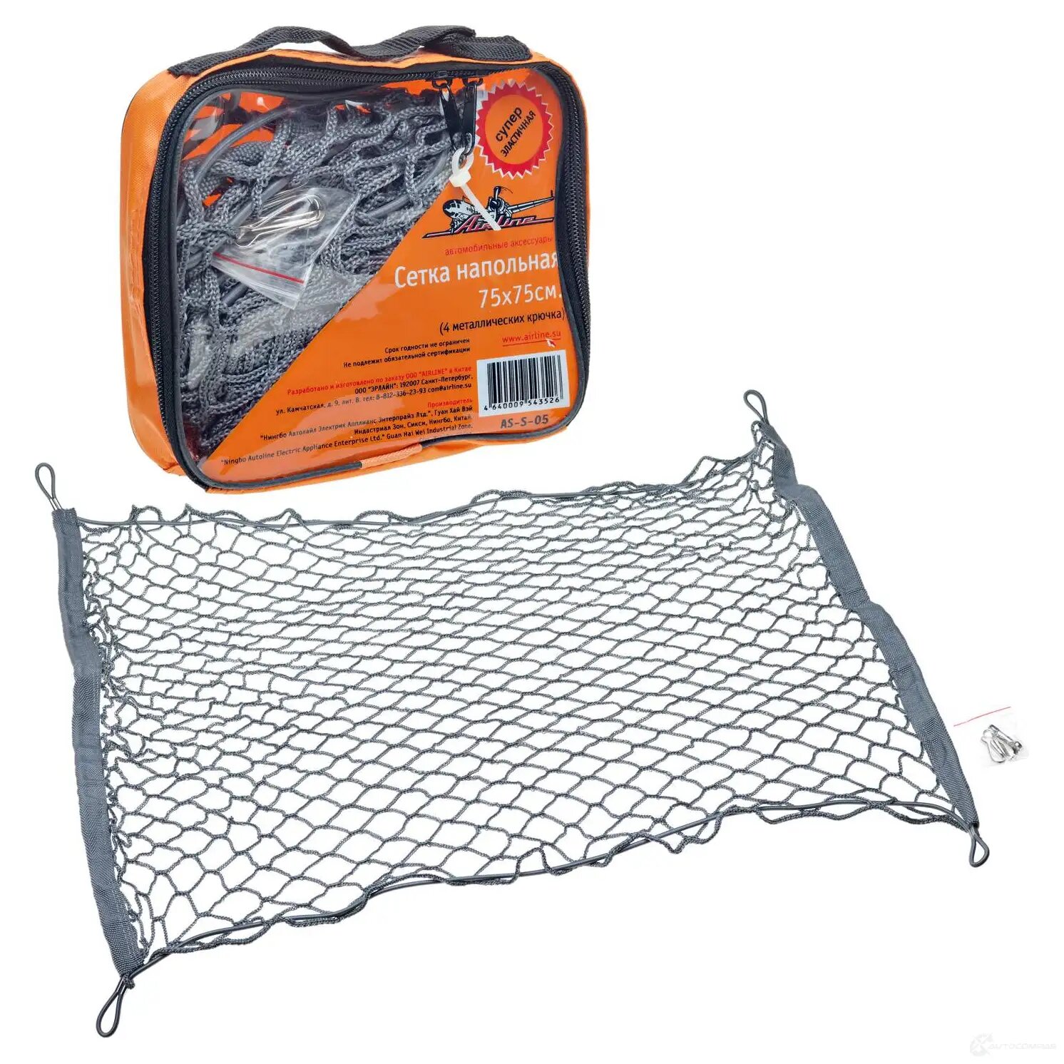 Сетка Напольная В Багажник Автомобиля 75x75 См. Серая 4 Металлических Крючка Сумка Airline As-S-05 AIRLINE арт. ASS05