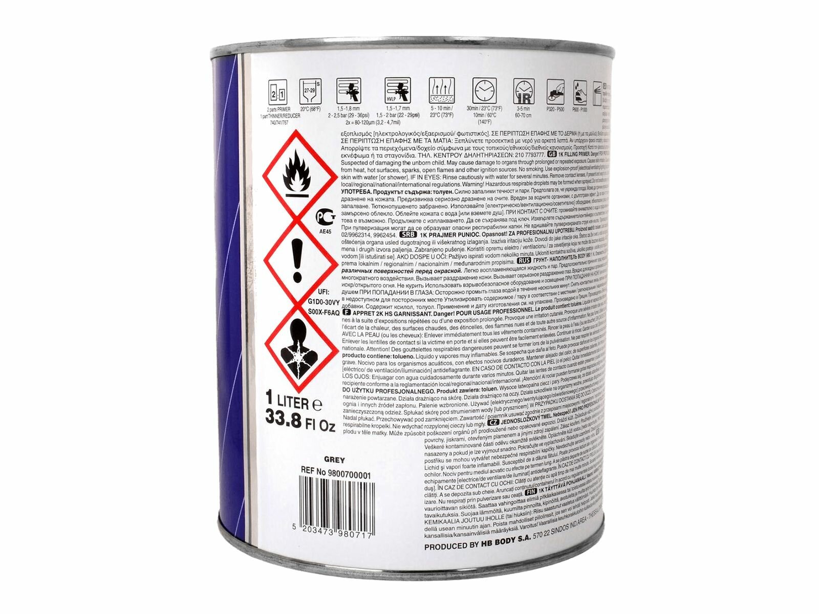 HB-BODY 9800700001 9800700001_грунт-наполнитель! BODY PRO P980 1К быстросохн.на отшлифованные поверхности серый 1л\