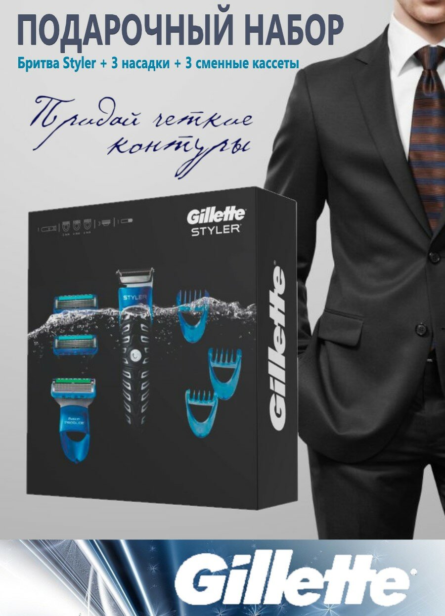 Купить Мужской подарочный набор Gillette бритва Styler, 3 насадки, 3 сменные кассеты (81712369)