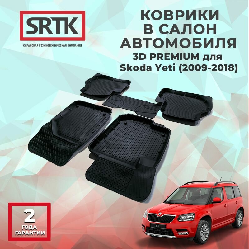 Резиновые 3D Premium коврики в салон SRTK для Skoda Yeti 1 поколение рестайлинг [2013-2018], Skoda Yeti 1 поколение [2009-2013]