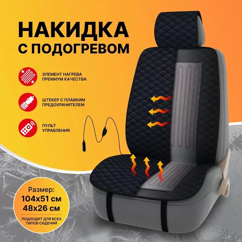 Накидка на сиденье с подогревом FERVOR черный 2х режим (1шт) PSV 132249