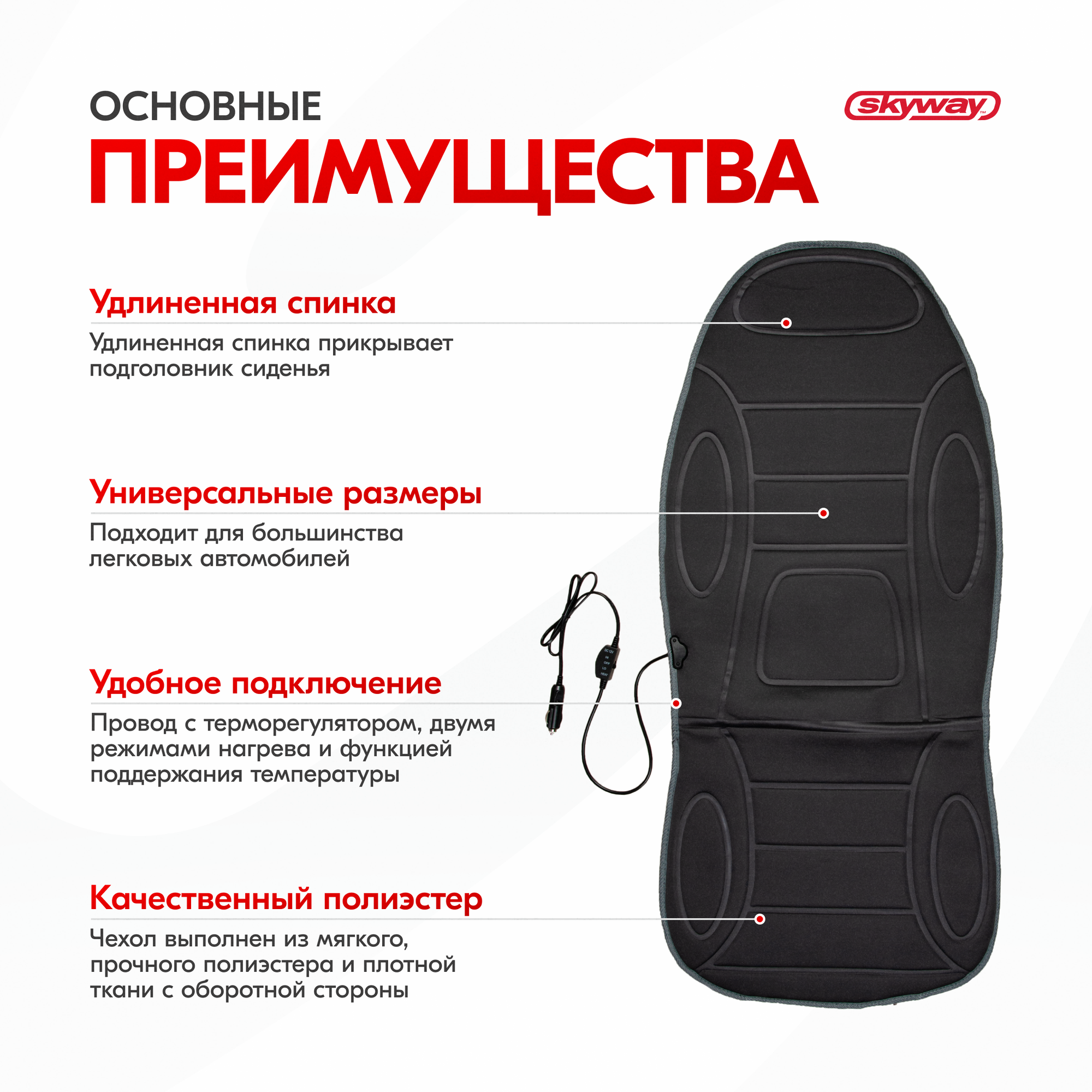 SKYWAY S02201004 Накидка на сиденье с подогревом с терморегулятором (2 режима) 120х51см 12V Серый 2,5А-3А SKYWAY