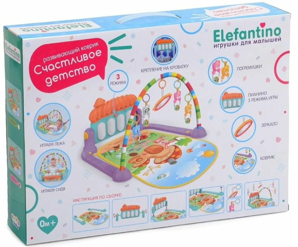 Коврик развив."Elefantino" 4 подвесные погремушки+зеркало.Пианино на бат.в/к 45,5*32*7,8см IT104346