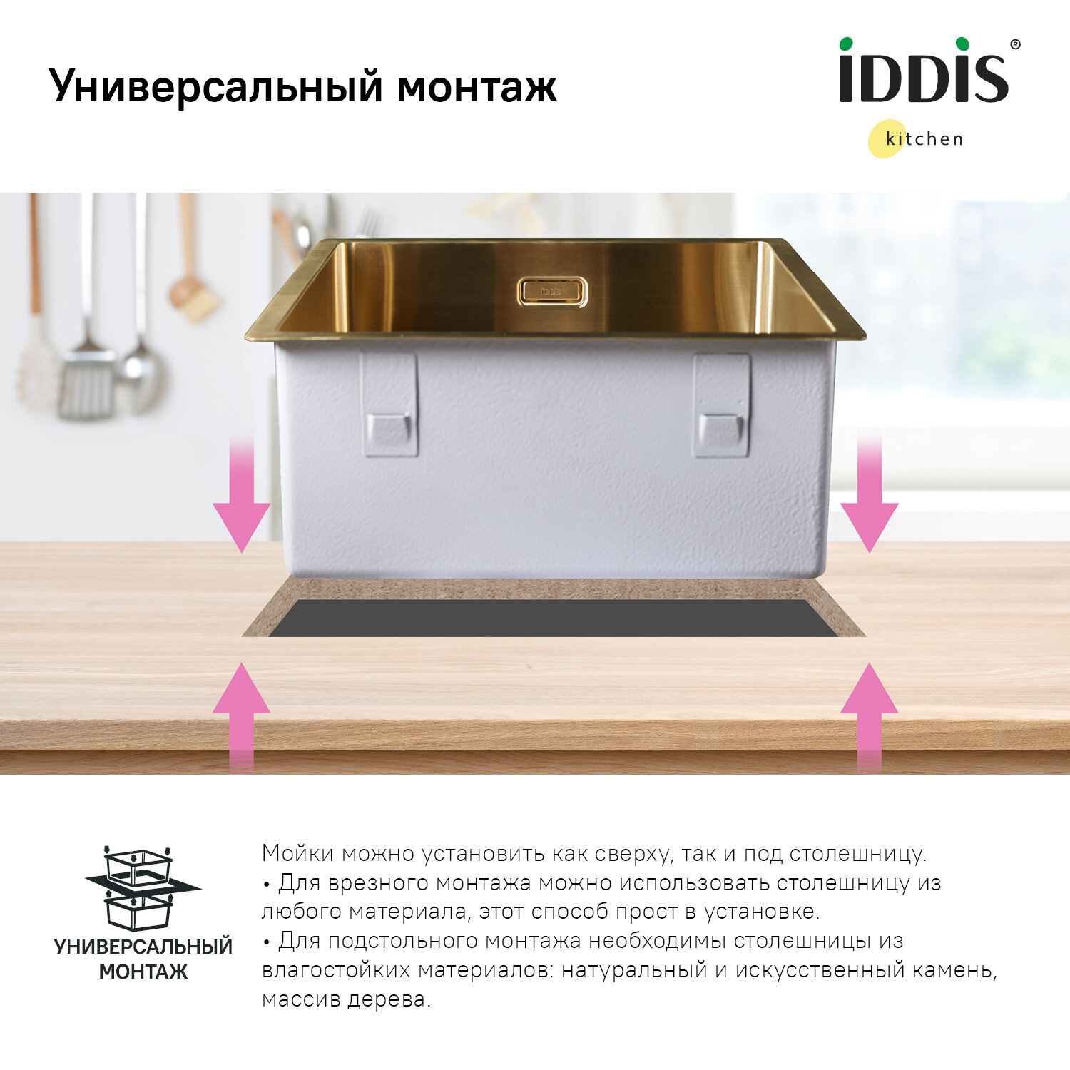 Мойка Iddis Edifice нержавеющая сталь универсального монтажа матовое золото 440х440 (EDI44B0i77)