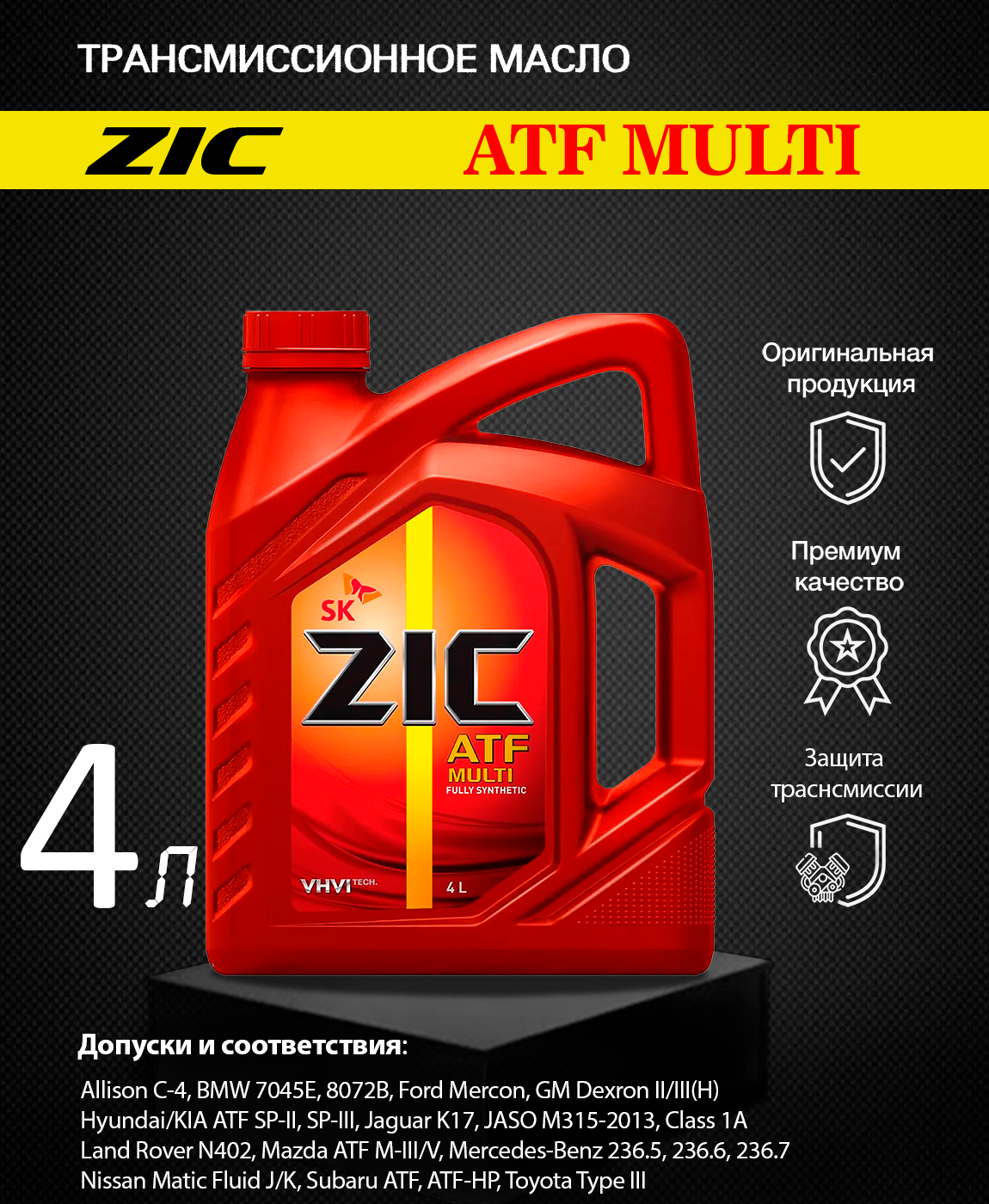Масло Трансмиссионное Zic Atf Multi Синтетическое 4 Л 162628 Zic арт. 162628