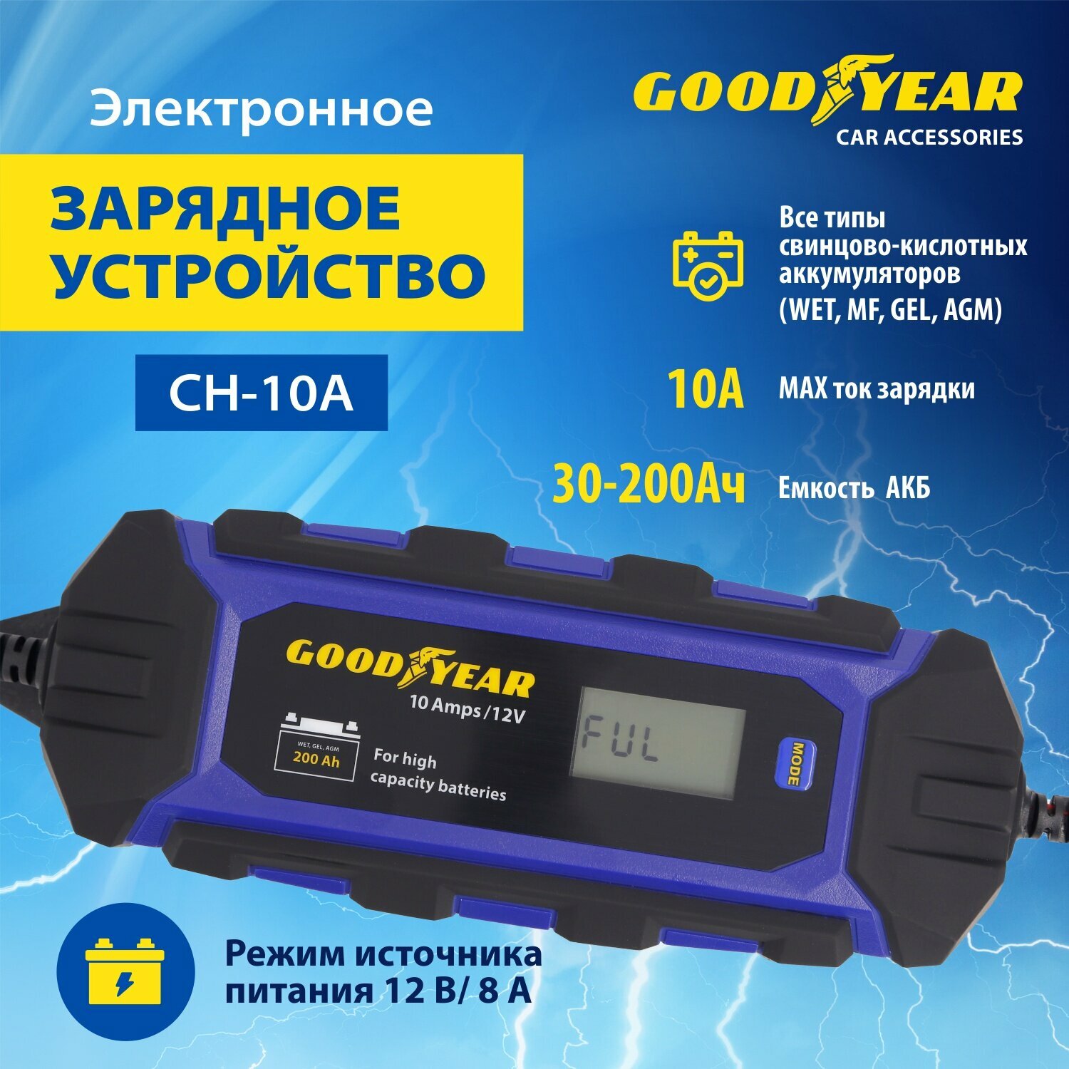GOODYEAR GY003003 Устройство зарядное Электронное зарядное устройство Goodyear для свинцово-кислотных аккумуляторов CH-10A