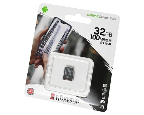 Карта памяти Kingston Canvas Select Plus microSDHC UHS-I + адаптер, SDCS2/32Gb