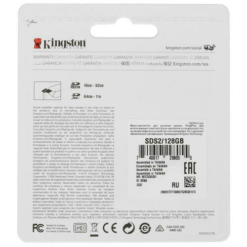 Карта памяти SDXC 128GB C10 SDS2/128GB KINGSTON