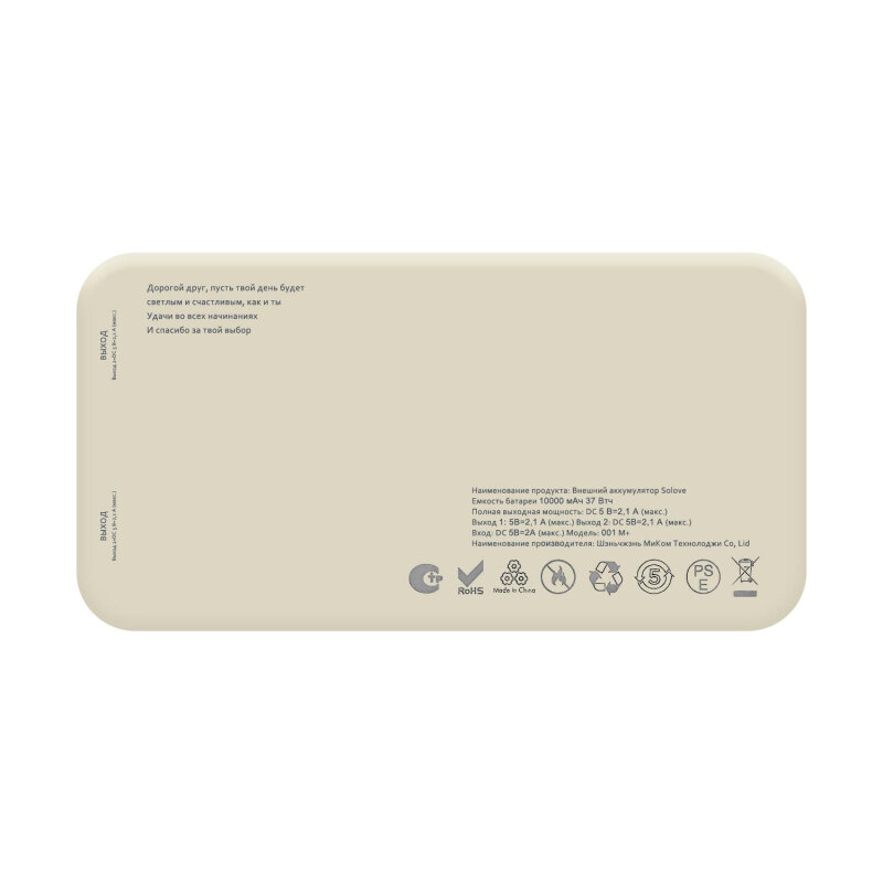 Внешний аккумулятор Solove 001M+ 10000мAч бежевый