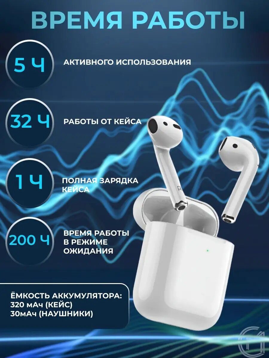 Хорошая качественная копия кейса и корпусов наушников. Быстрое сопряжение со смартфоном. Меню аналогичное Apple AirPods |