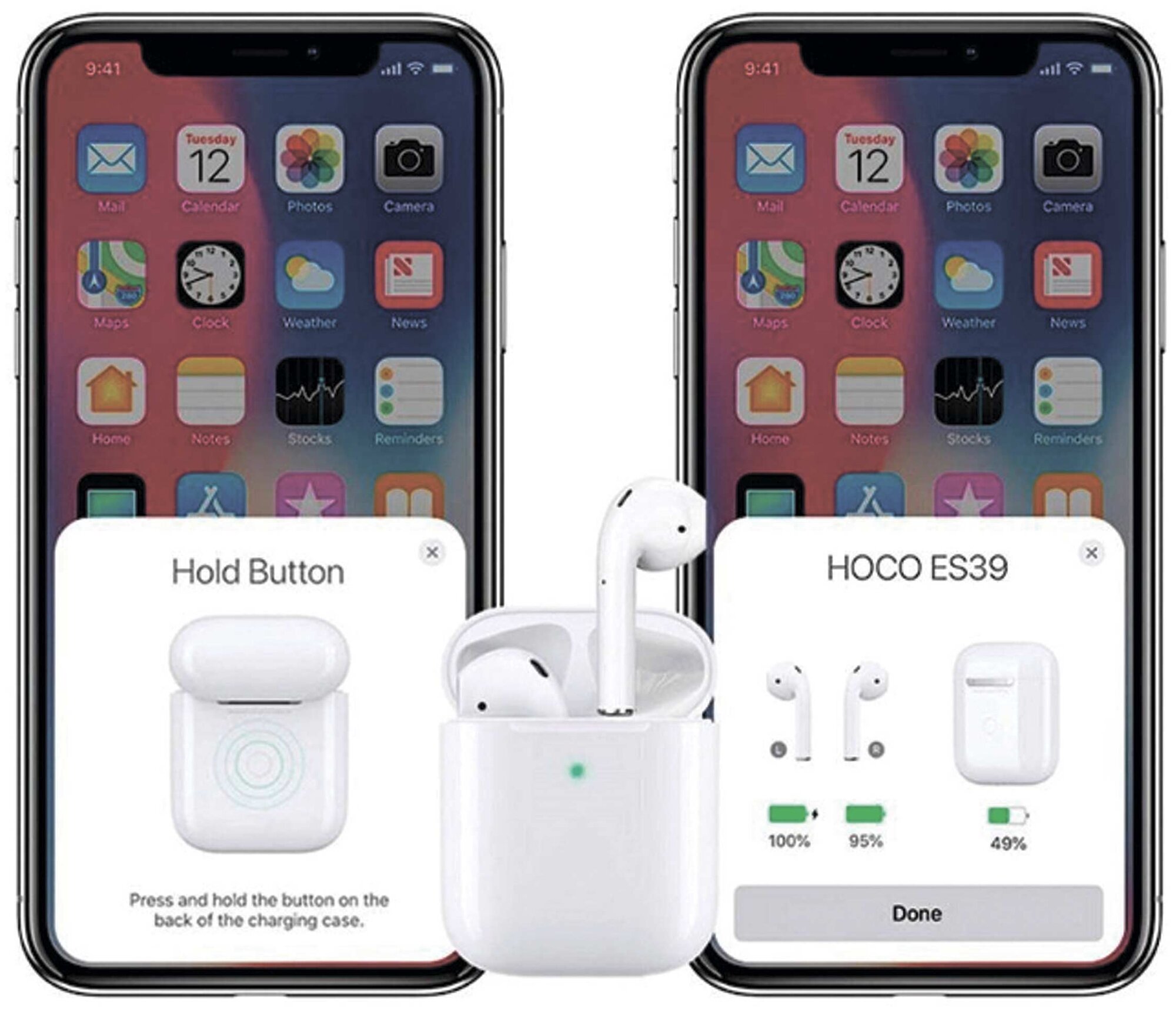 Наушники HOCO eS39 беспроводные оригинальной серии с док станцией, полная поддержка iPhone, белый