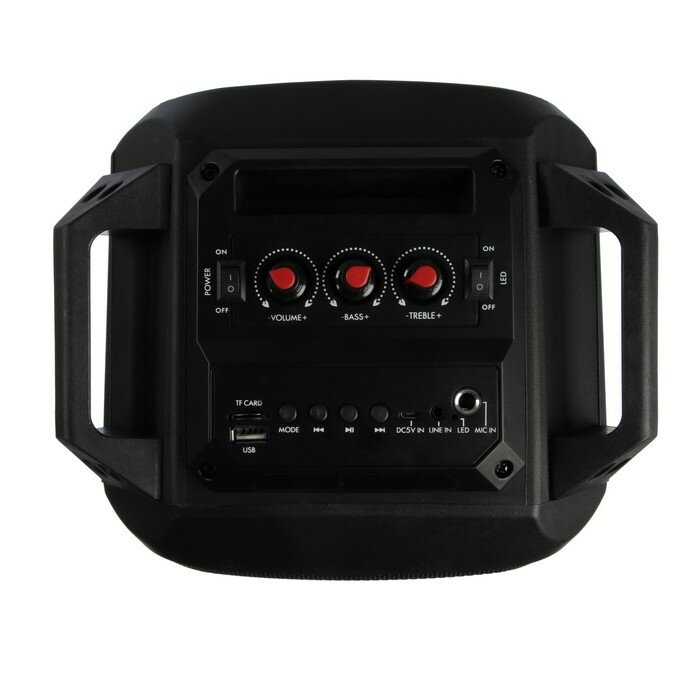 | Плюсы: | Интересная конструкция, даже есть карман для смартфона, устойчивая. Все тумблеры и кнопки рабочие. Карту памяти в 16 Гб увидел и распознал сразу же, все треки воспроизводит без подвисания. Блютуз соединение быстро устанавливается. |