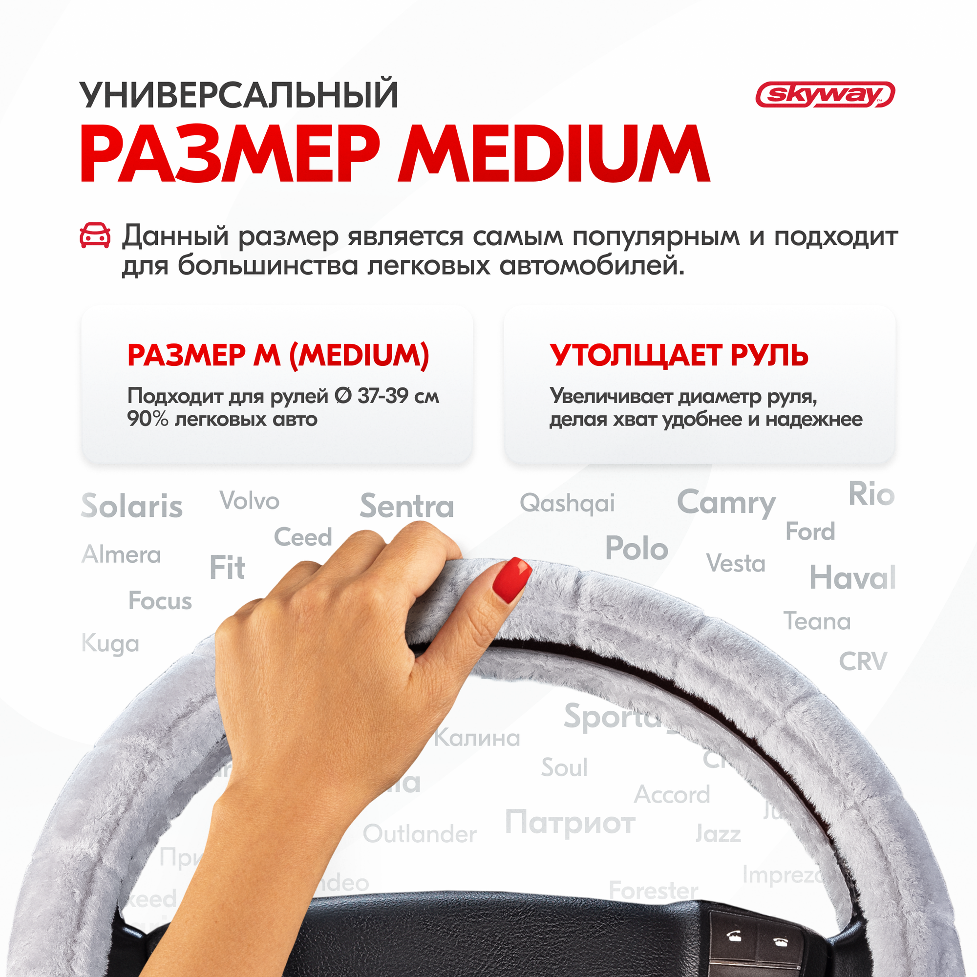 Оплетка руля M Skyway Eco Arctic-1 искусственный мех серая SKYWAY S01107013 | цена за 1 шт | минимальный заказ 1