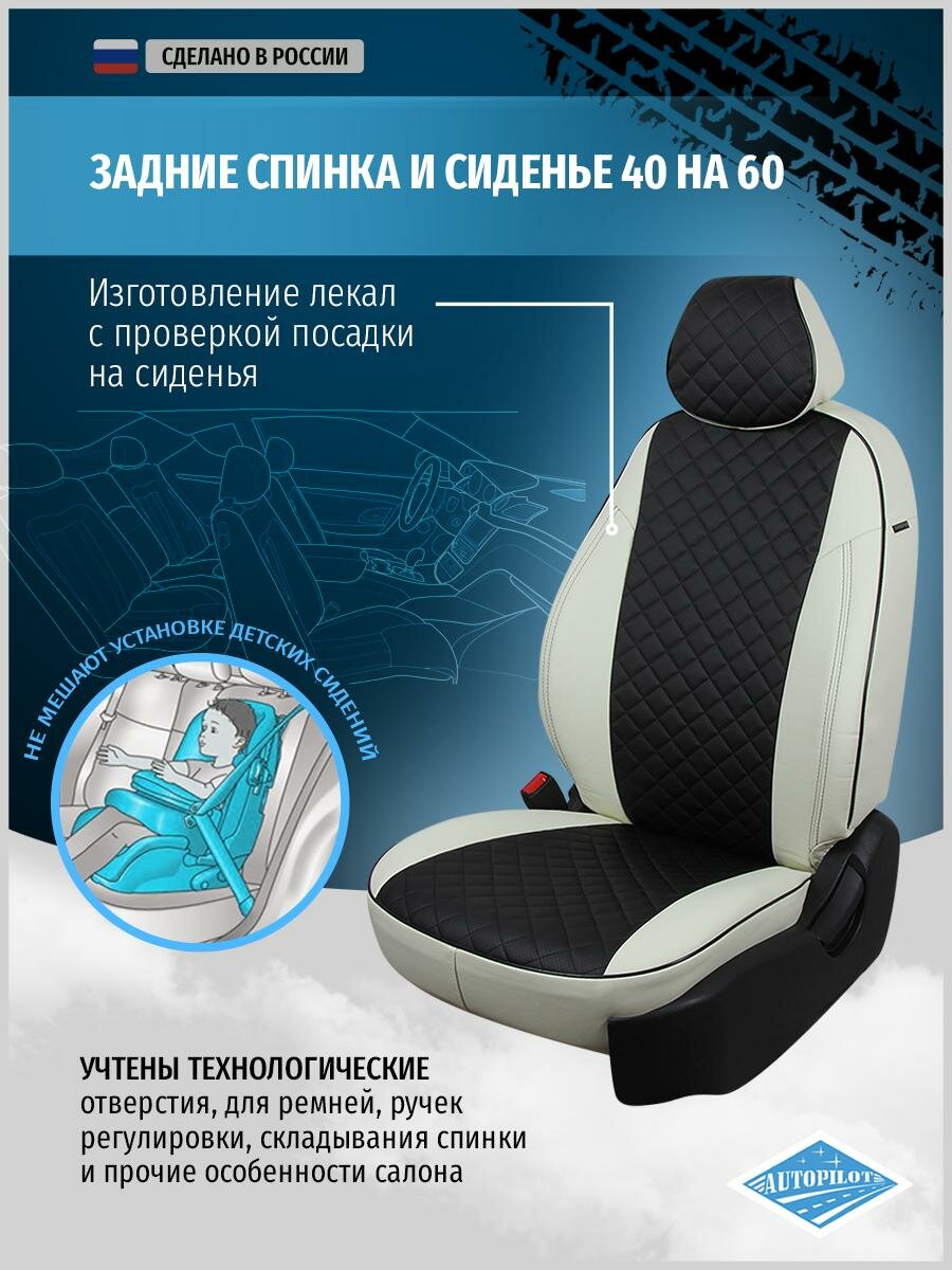 Купить Комплект чехлов Автопилот Ромб Skoda Fabia II Hb/Wag (40/60) с 07-14г. Белый + Черный