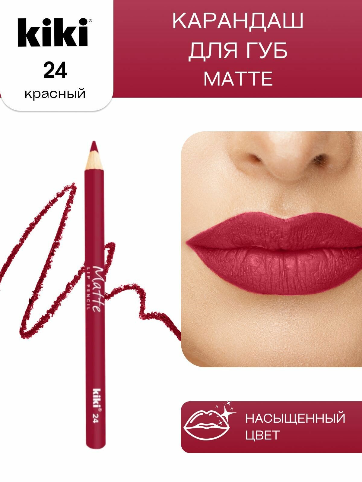 Карандаш для губ kiki MATTE тон 24 красный, водостойкий косметический, лайнер, матовый насыщенный цвет, lip pencil
