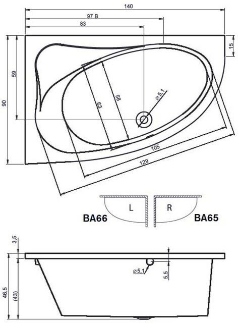 Акриловая ванна Riho Lyra 140 R BA6500500000000