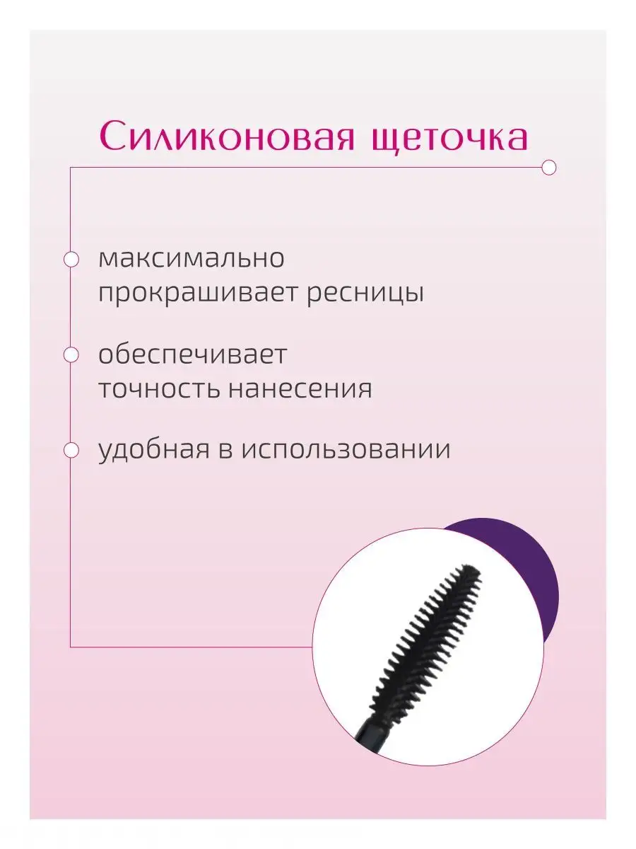 | Плюсы: | Удобная силиконовая кисточка, не склеивает ресницы |