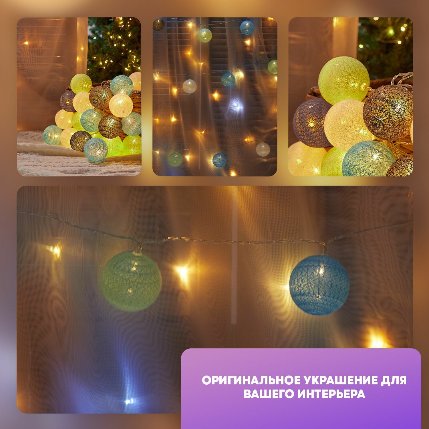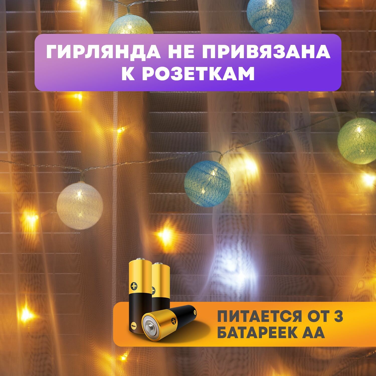 | Плюсы: | Легкая гирлянда, шары в нитяной оболочке, выглядит очень симпатично |