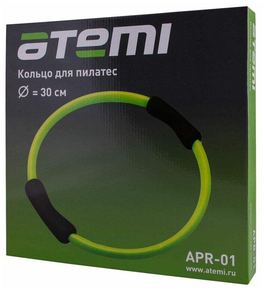Кольцо изотоническое для пилатеса и фитнеса Atemi APR01-1 диаметр 30,5 см, зеленый, для удобства снабжено неопреновыми накладками.