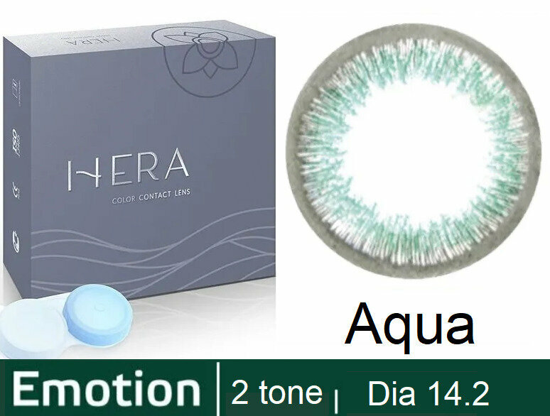 Купить Hera Emotion Бирюзовые линзы -2.00 / 14.2 / 8.6, 2 тона(подходит для светлых и тёмных глаз), 2 штуки (линзы), квартальные. Dreamcon Hera Color Emotion Aqua цветные контактные линзы аква цвета. Срок ношения линзы - 3 месяца. 2 шт. линзы