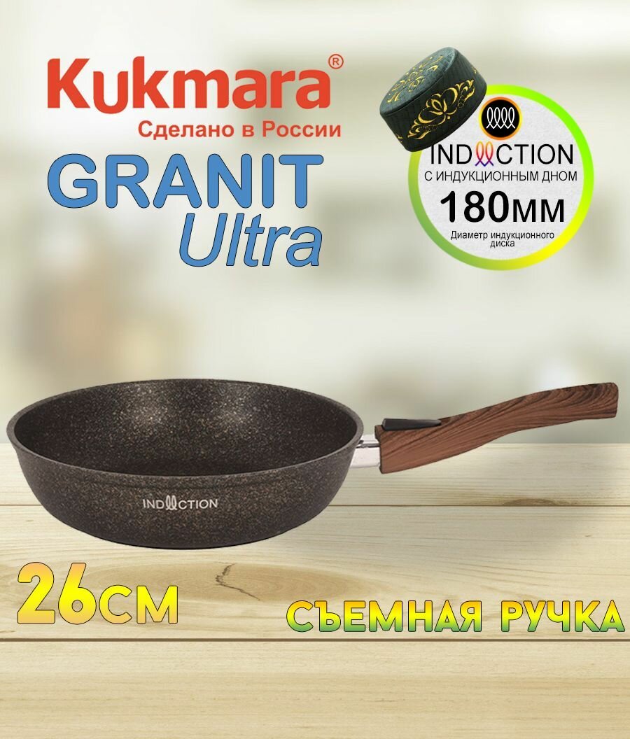 Купить Сковорода для индукции Kukmara Кукмара 26см со съемной ручкой литой алюминий антипригарное покрытие "Granit ultra Induction" цвет Original сгои262а