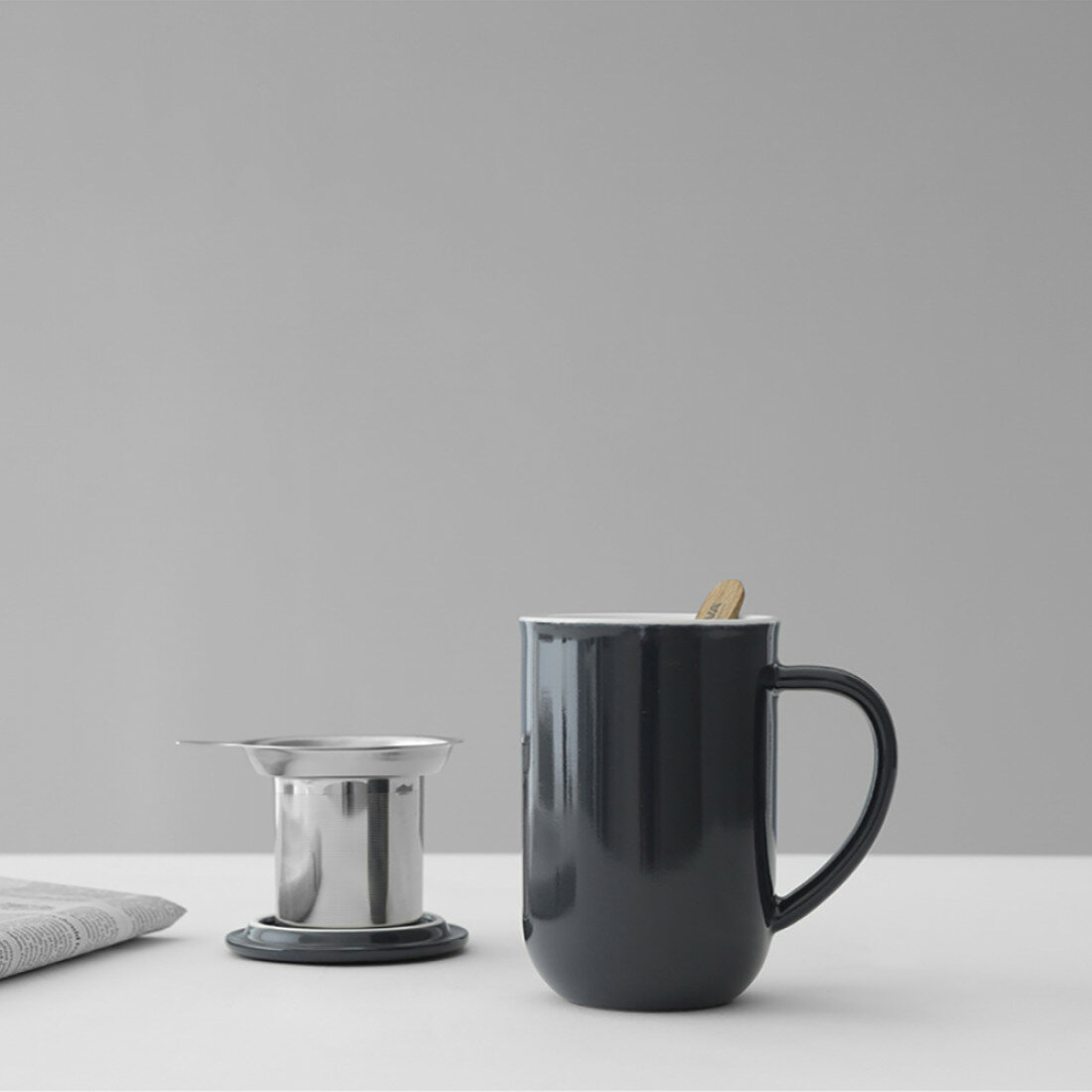 Чайная кружка с ситечком Viva Scandinavia Minima, 0.5л, фарфор, тёмно-синий V77545