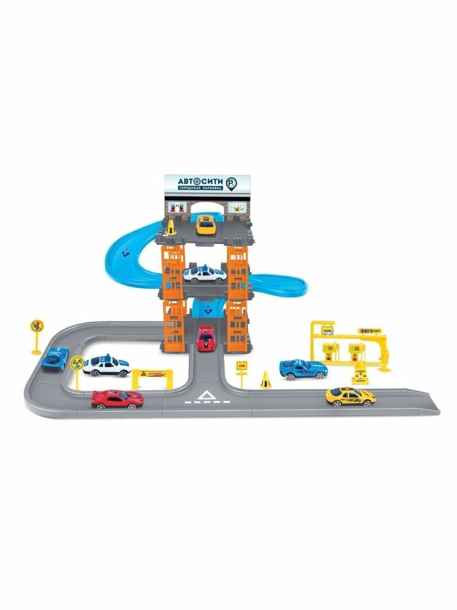 Парковка АвтоСити, 3-х уровневая в наборе с машинками и игровыми предметами