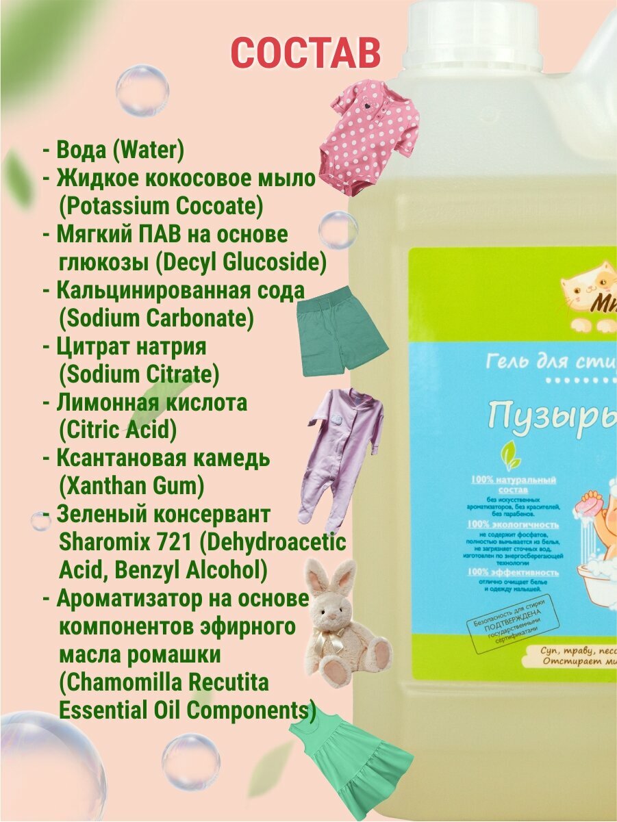 Милин Дом Гель для стирки детской одежды "Пузырьки" с ароматом ромашки, 5 л интересное: