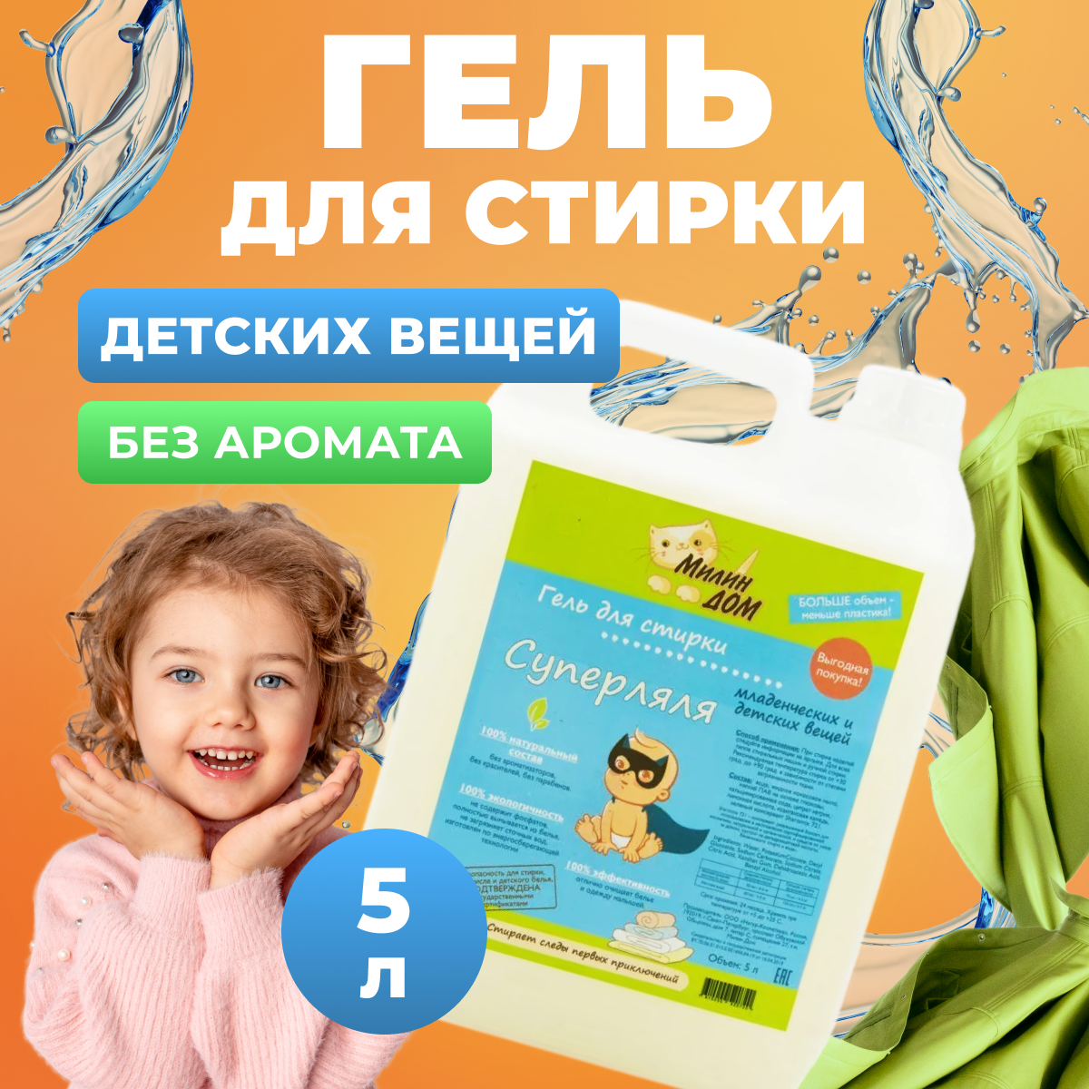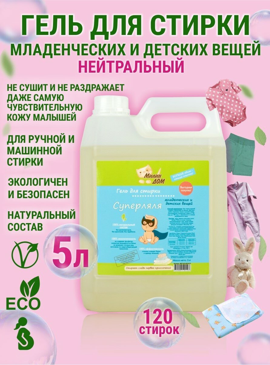 Гель для стирки Милин дом "Суперляля" средство для детского белья и одежды младенцев, 5 л