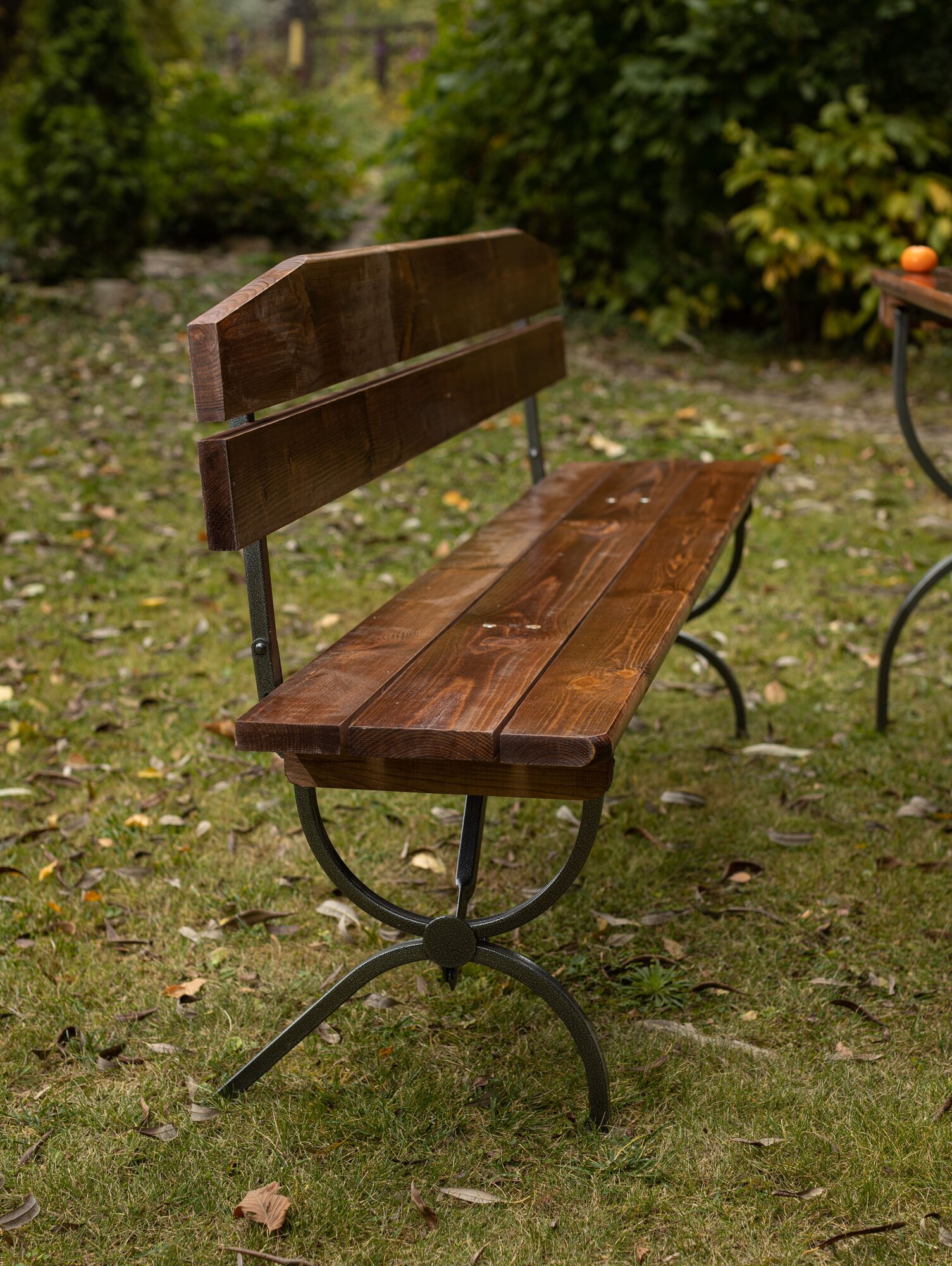 Скамейка садовая Классика с деревянными спинкой и сиденьем без покраски, лавочка для дачи с металлическим каркасом