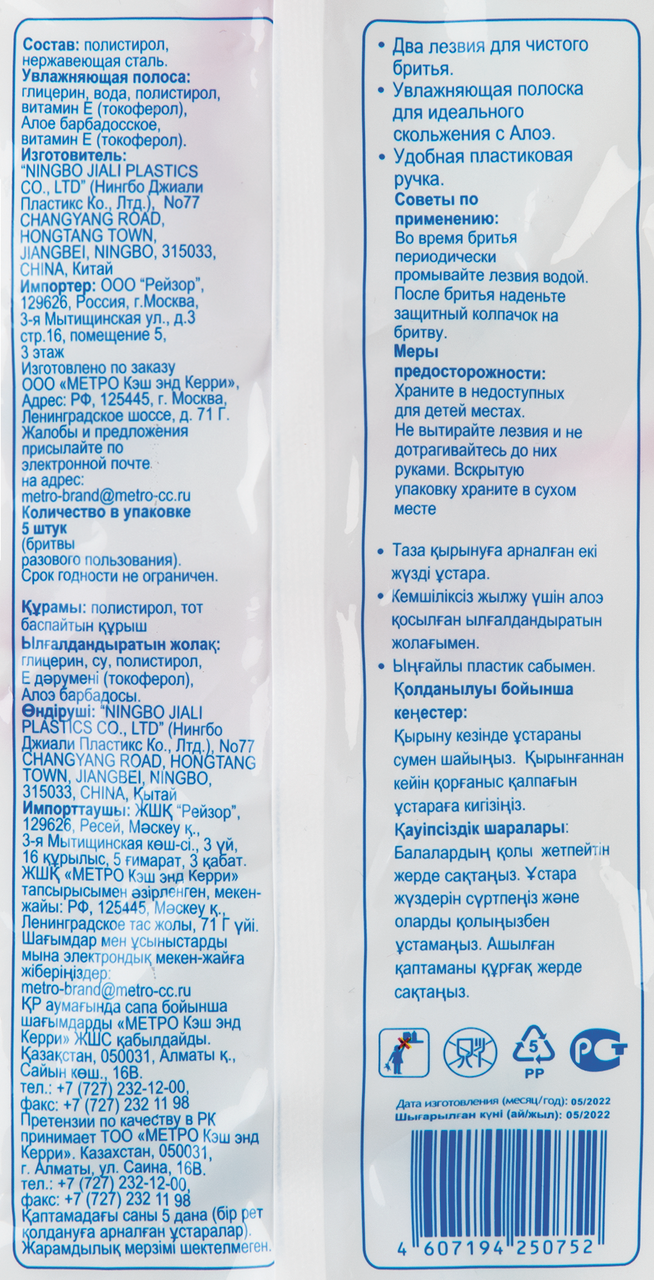 Ниже Вы можете прочитать отзывы на aro Бритва женская одноразовая, 5шт, ознакомится с подробными характеристиками, посмотреть интересные обзоры и фотографии на aro Бритва женская одноразовая, 5шт.