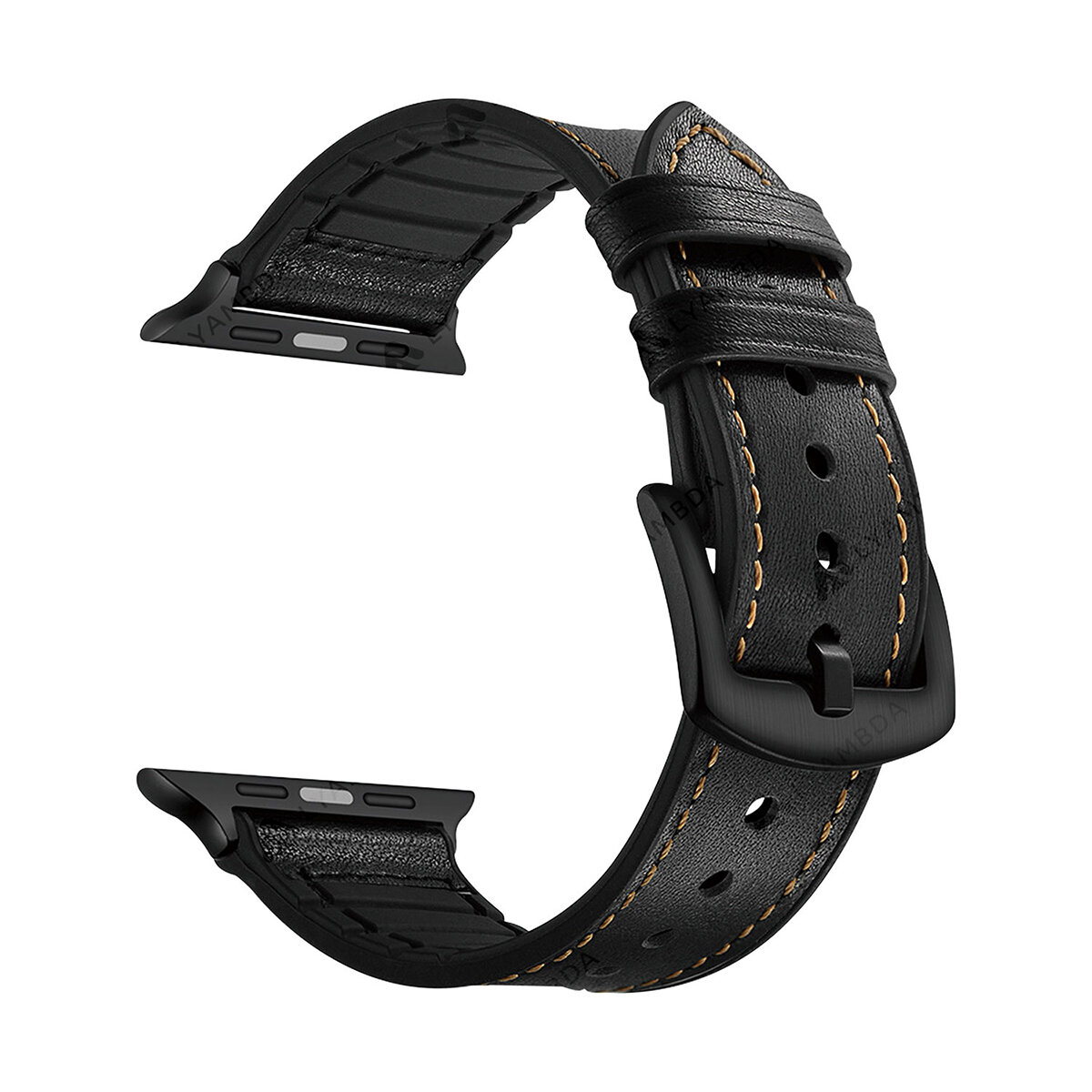Купить Комбинированный ремешок кожа/силикон для Apple Watch 38/40/41 mm Series 1-7, SE LYAMBDA ANTARES LWA-10-40-BK Black
